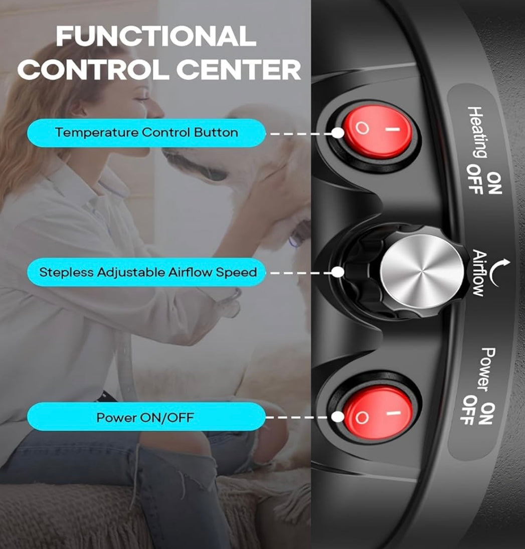 • Powerful & fast: Up to 5.2 HP / 3800W motor dries to the undercoat quickly; cut dry time by ~65% vs. regular hair dryers