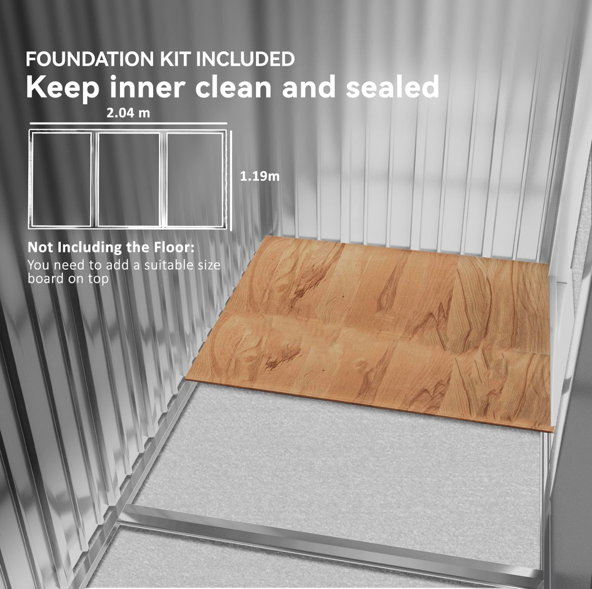 🏷️ 7×4 ft Outdoor Metal Storage Shed — Galvanized Steel Waterproof Garden Tool Shed with Foundation Kit (Classic Grey)