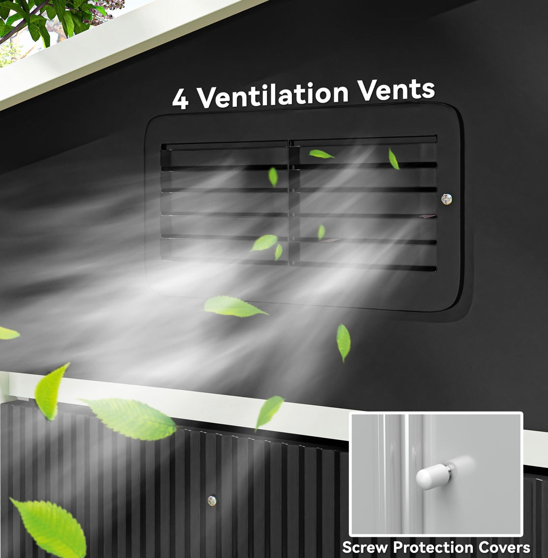 ✅ Selected Materials – Constructed from galvanized steel roof & walls with a protective film, shielding your belongings from rain, UV rays, and harsh weather.