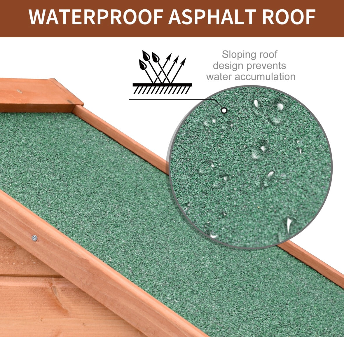 - Material: Solid Fir Wood, Asphalt Felt Roof