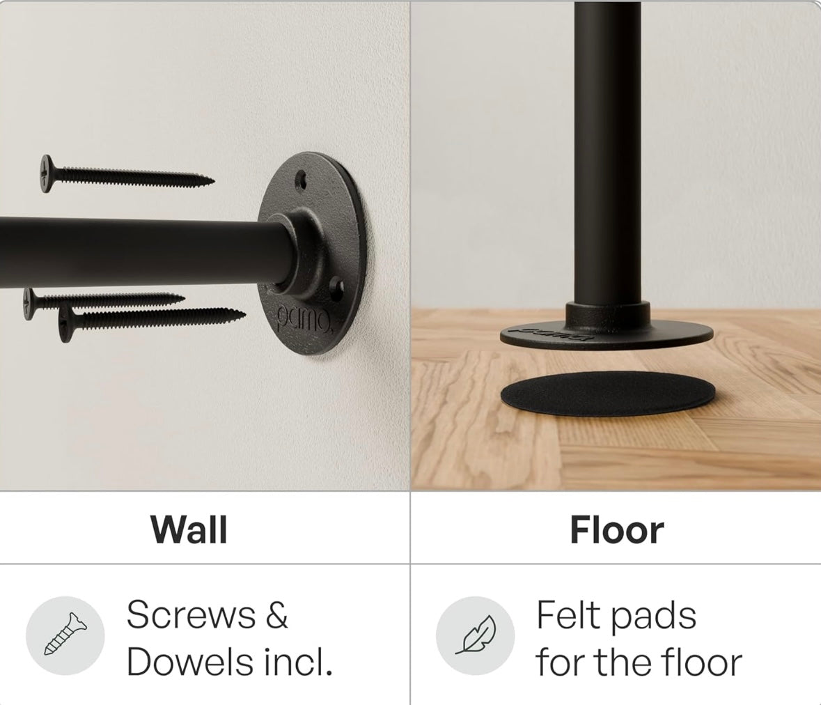 Add sleek, industrial style and sturdy organization to your space with the Pamo Heavy-Duty Wall-Mounted Clothing Rack. Crafted from premium black metal pipe, this rack offers modern minimalist design with serious strength — perfect for bedrooms, boutiques, walk-in closets, or retail displays.