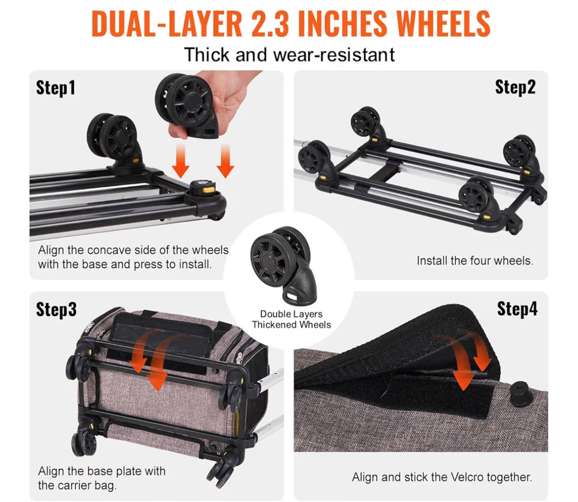 With its lightweight build, smooth wheels, and breathable comfort, the VEVOR Rolling Pet Carrier is the easiest way to travel with your cat or small dog. It keeps your pet safe, comfortable, and right by your side wherever you go.
