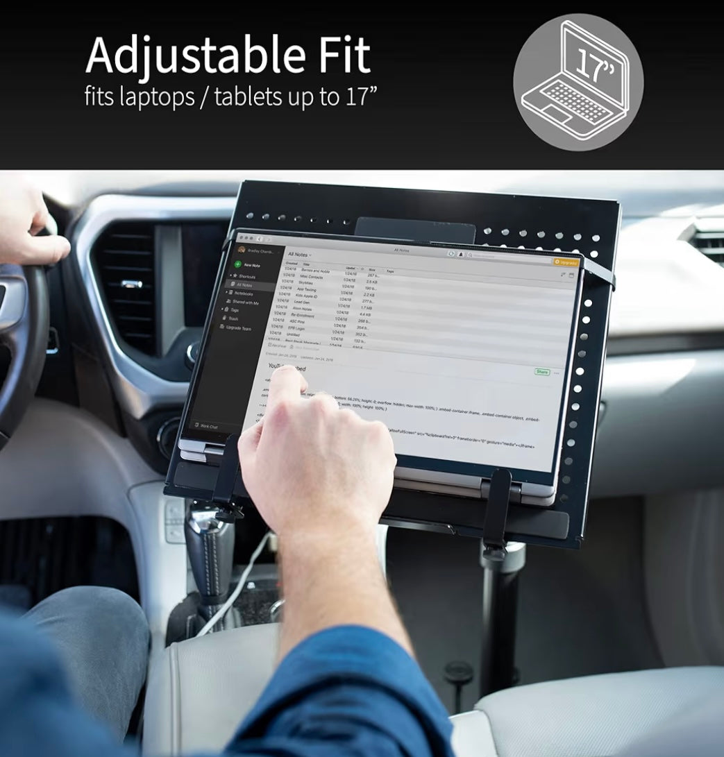 Perfect for contractors, service technicians, delivery drivers, and anyone needing reliable in-vehicle access to their laptop or tablet.